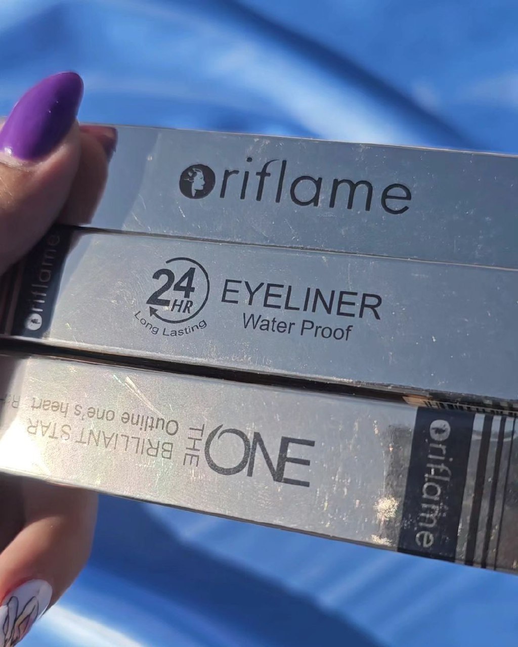 و جایزه داره خط چشم گیاهی و ضد حساسیت اوریفلیم این خط چشم با ضمانت شخص شخیص خودمه و حرف ندارررره یه پوکه فلزی خوشگل داره ماندگاری بسیاااار بالا قلم مویی خیلی خیلی ظریف و نازک و عالی ضد حساسیت کاملا مشکی کیفیتش بالاااا،عالی ، پرفکت بدون ریزش و سیاهی دور چشم ضد آب فقط راستی فیک محصول در بازار بین 50 الی70تومنه